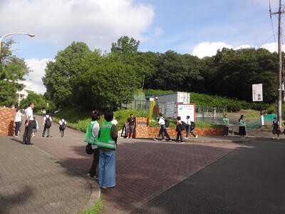 9月13日(水)に第40回上山口中学校体育祭が開催されました。正門にて各クラスの体育祭ボランティアの方が約40分ずつ担当し、名札を着用されずに来校された方へ記名をお願いしたり、自転車で来校された方へ駐輪場のご案内、車で来校された来賓の方へ駐車場のご案内をしたり、安全に体育祭が運営されるよう活動していました。